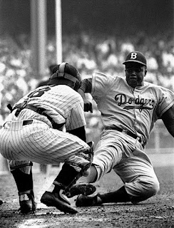 | Robinson steals home in Game 1, perhaps the defining moment of his career. |
